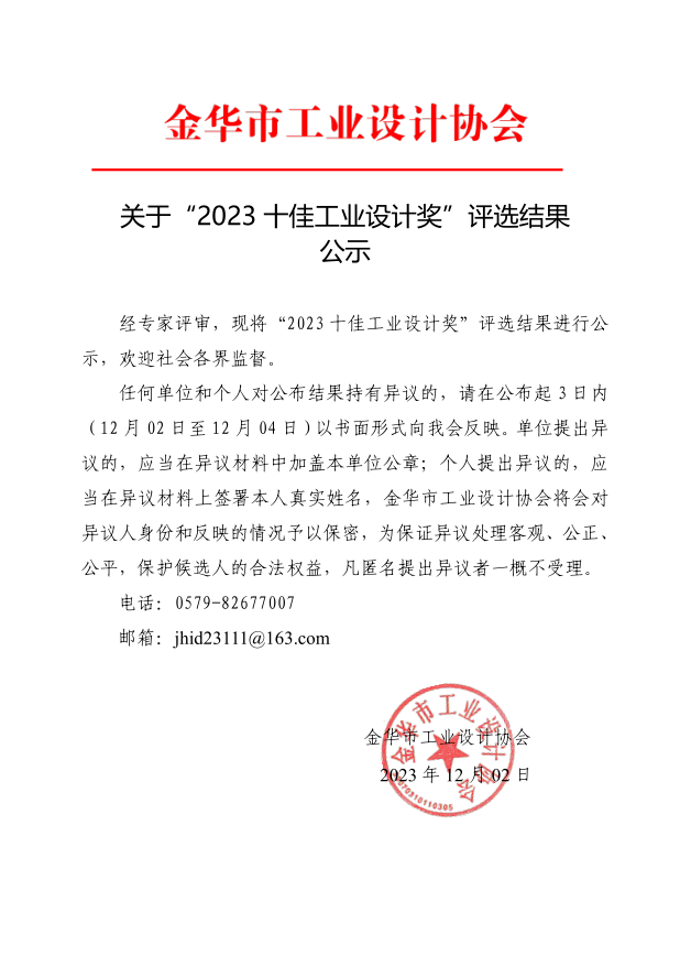关于“2023十佳工业设计奖”评选结果公示