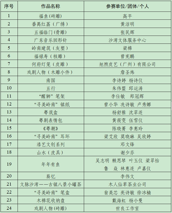 由广州市文学艺术界联合会主办,广州市民间文艺家协会等承办的首届“湾区有礼 城市手信”文创精品大赛活动以挖掘、培育和提升城市文化和手信产品发展品质为宗旨,经组织专家组评审,从参赛来稿中按六大类别共评选出入围作品60件。